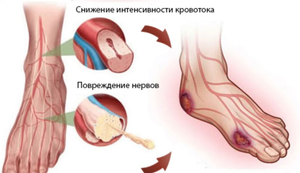 У людей с диабетом могут развиться проблемы с ногами в результате повреждения нервов и кровеносных сосудов. Эти проблемы могут легко привести к инфекции, изъязвлению и в конечном итоге ампутации. Раннее выявление и хорошее лечение могут предотвратить язвы и ампутации.